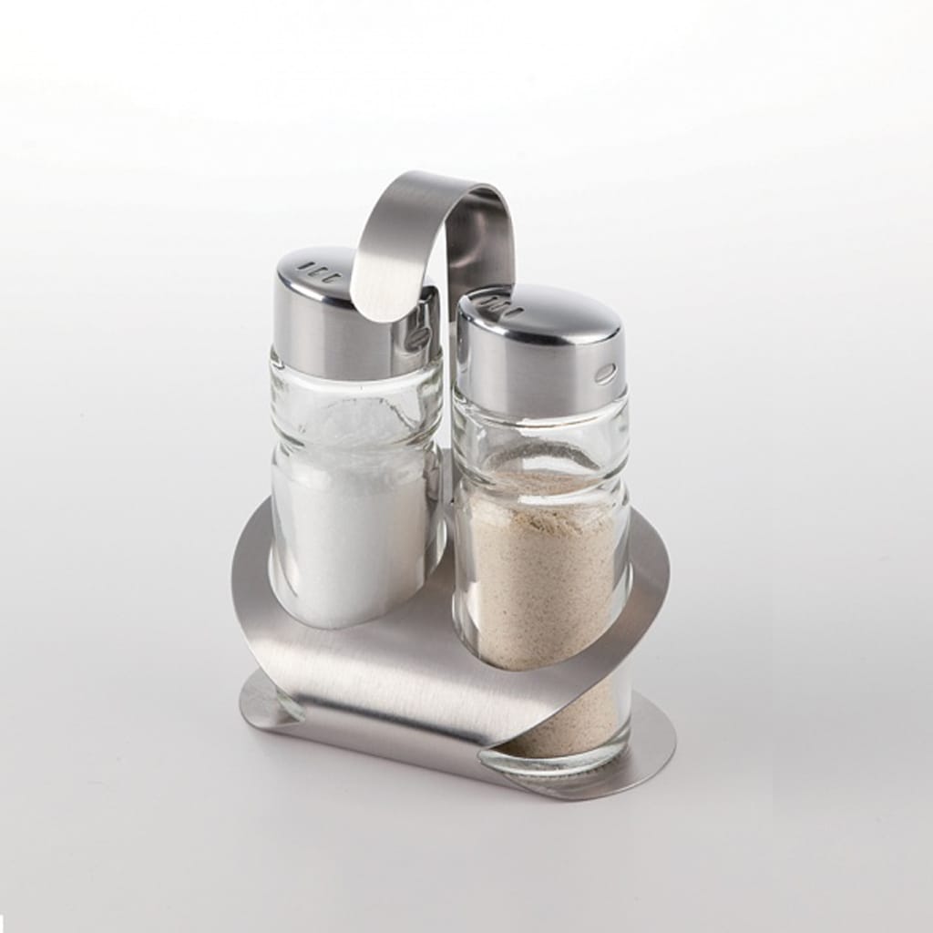 Slánka a pepřenka z čirého skla v nerezovém stojánku 8, 9 cm, opatřené úchytem pro přenášení. Dochucovací souprava má dokonalý design, snadná údržba, vhodná do myčky na nádobí, dodáváme v pěkném dárkovém balení. Rozměry – 3 x 8,9 cm.