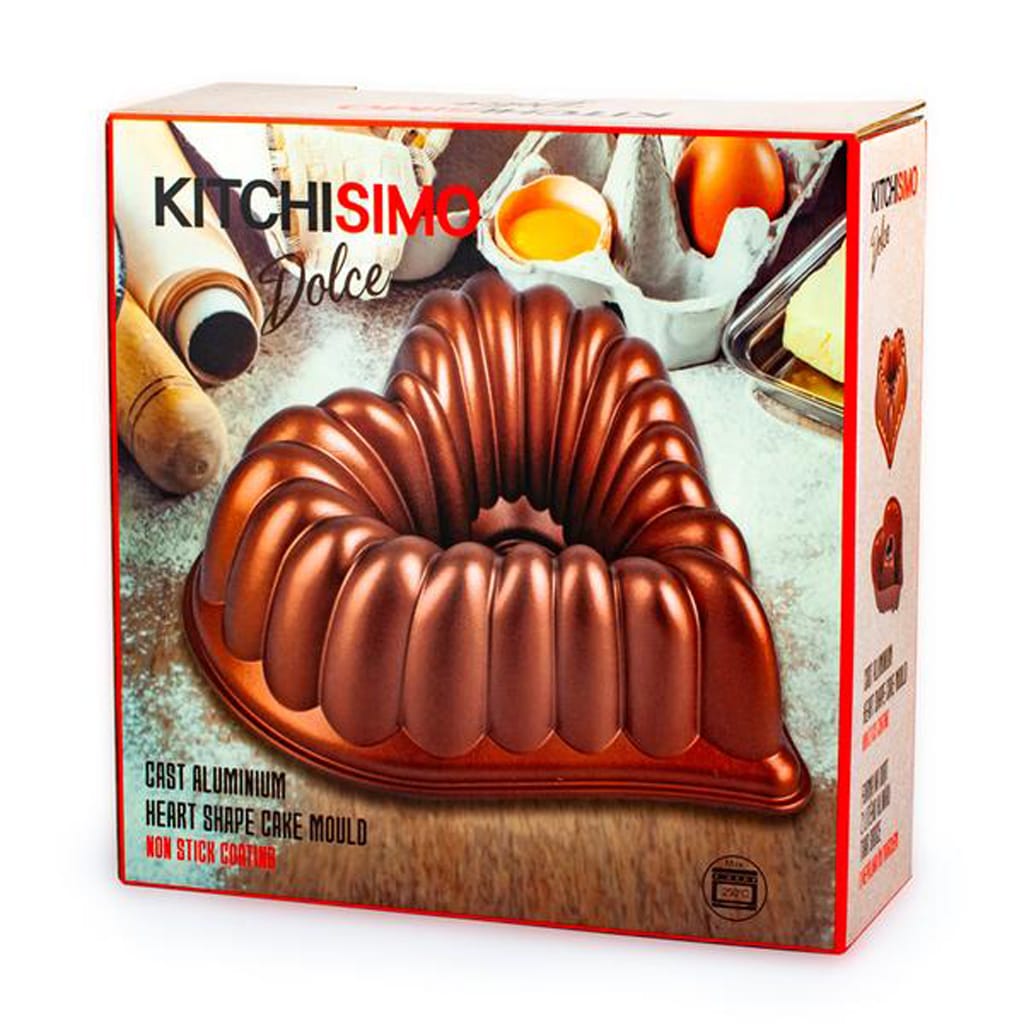 Forma na bábovku linie KITCHISIMO Dolce ohromí svojí originalitou a nadstandardní kvalitou. Je vyrobena z prvotřídního litého hliníku proto je bábovka rovnoměrně propečená, díky velmi kvalitnímu nepřilnavému povrchu se vždy povede jednoduše vyklopit. Jedinečný tvar srdce ohromí všechny milovníky domácí poctivé bábovky. forma je zabalena v dárkové krabici, bude perfektní i jako dárek.