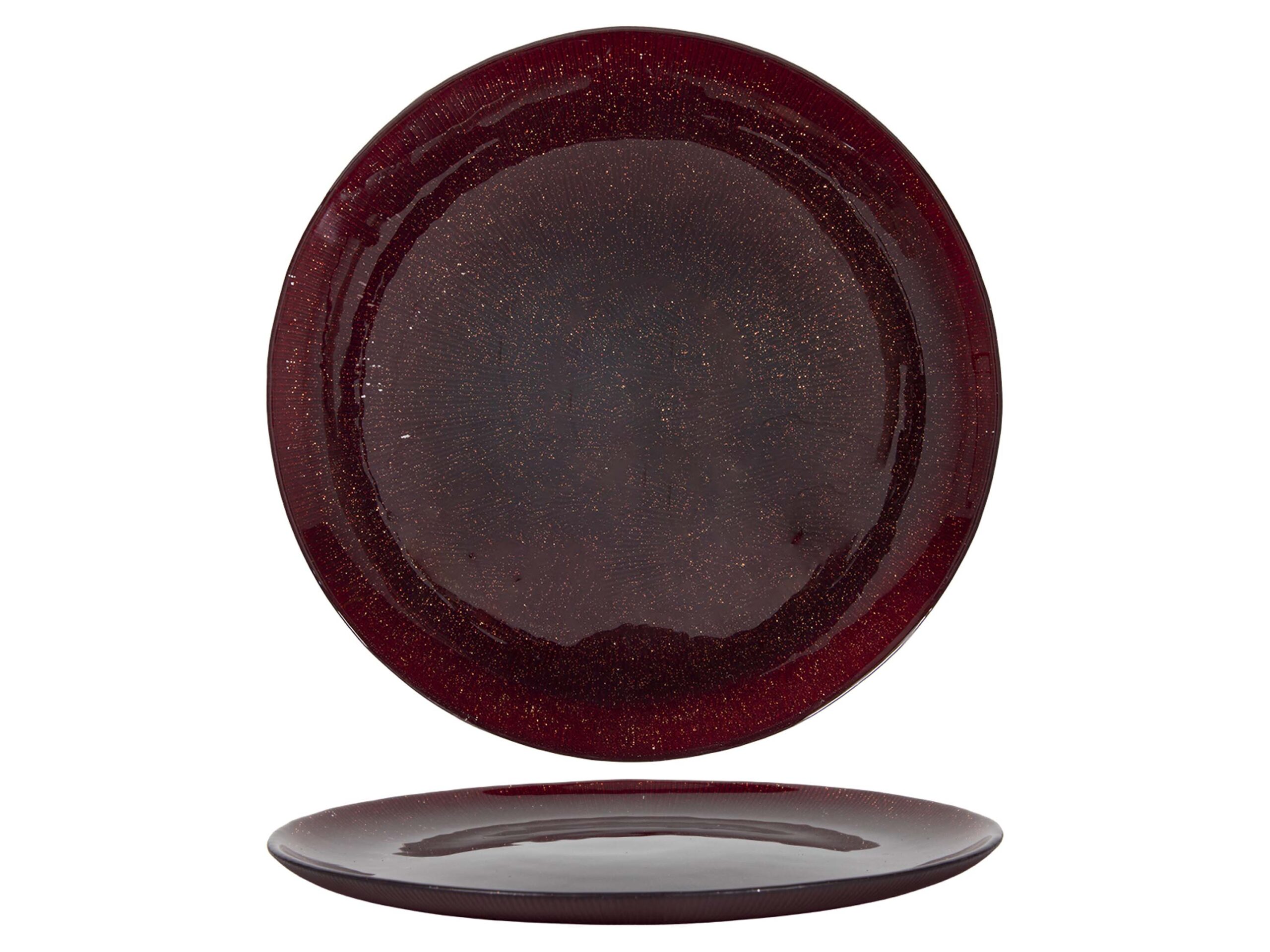 HIT Skleněný jídelní talíř 27cm červený s glitry