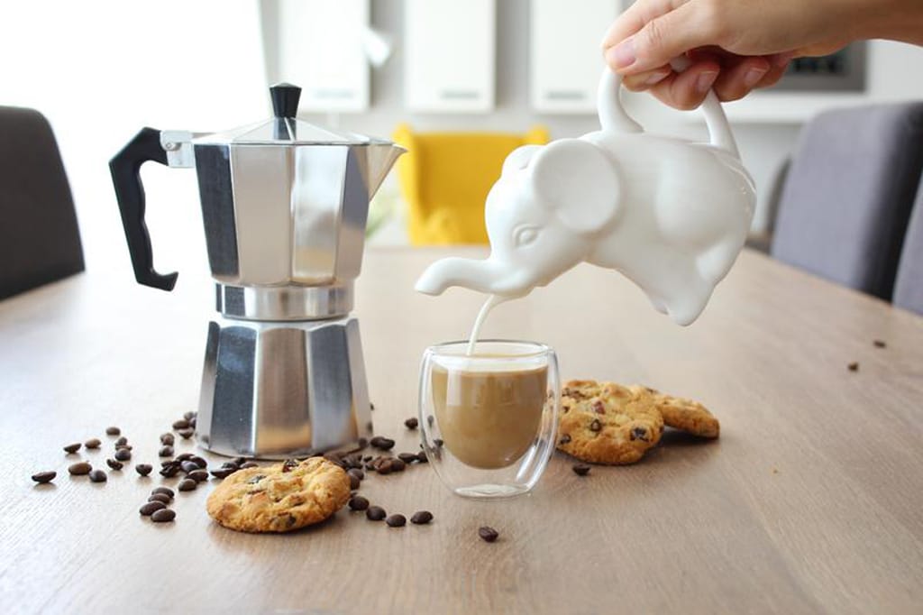 Keramická konvička na mléko ve tvaru slona je ideální volbou pro servírování mléka či smetany ke kávě. Rozměry 15,2 x 7,3 x 12,5 cm.