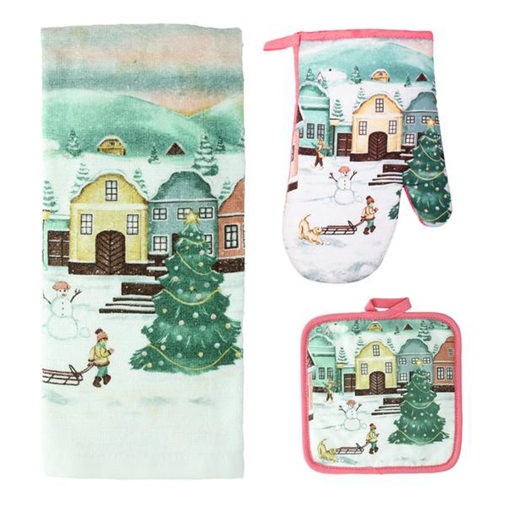 Kuchyňský set TORO vesnička – rukavice, chňapka, utěrka