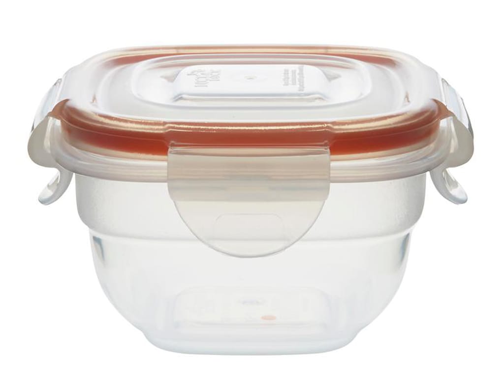 Dózy Lock & Lock „Easy Match“ čtvercové jsou bezpečné a funkční nádoby vyrobené z kvalitního plastu, který je trvanlivý a odolává vysokým teplotám. Tyto dózy jsou 100% vzduchotěsné a tím zajišťují dlouhodobou čerstvost uchovávaných potravin a jsou vynikající také z hlediska uchování vůně (aroma). Čtyři pohyblivé „klipy“ zajišťující víko jsou odolné proti opotřebení. Nádoby mají speciálně upravené vnější dno tak, aby se mohly bezpečně stavět na sebe a neklouzaly. Dózy Lock & Lock lze použít v chladničce, v mikrovlnce, v mrazáku i v myčce na nádobí. Dózy Lock & Lock prošly přísnými hygienickými zkouškami a odpovídají nejpřísnějším předpisům. Objem 100 ml. Barva čirá, oranžová.