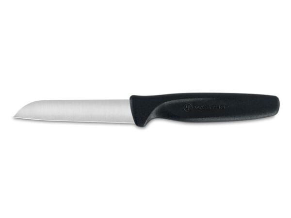nůž na zeleninu WÜSTHOF – černý s ultraostrou hranou a ergonomickou rukojetí. Délka čepele: 8 cm, výška čepele: 1,8 cm, délka rukojeti: 10,6 cm, použití – malé ovoce a zelenina.
