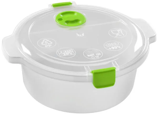 Plastová dóza HEIDRUN je vynikající pro rychlé rozmrazování, ohřívání i vaření v mikrovlnné troubě. hotové pokrmy pak můžete v dóze uchovávat v ledničce nebo zmrazit. Na víku má dóza otočný uzávěr pro odvod páry.