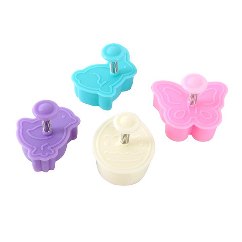 Razítka na cukroví s velikonočními motivy. Materiál – plast. Jednoduše vytisknete velikonoční razítko do těsta při pečení cukroví. Balení obsahuje 4 ks různých motivů – zajíček, kuřátko, vajíčko a motýlek. Rozměry – 5 x 6 cm.