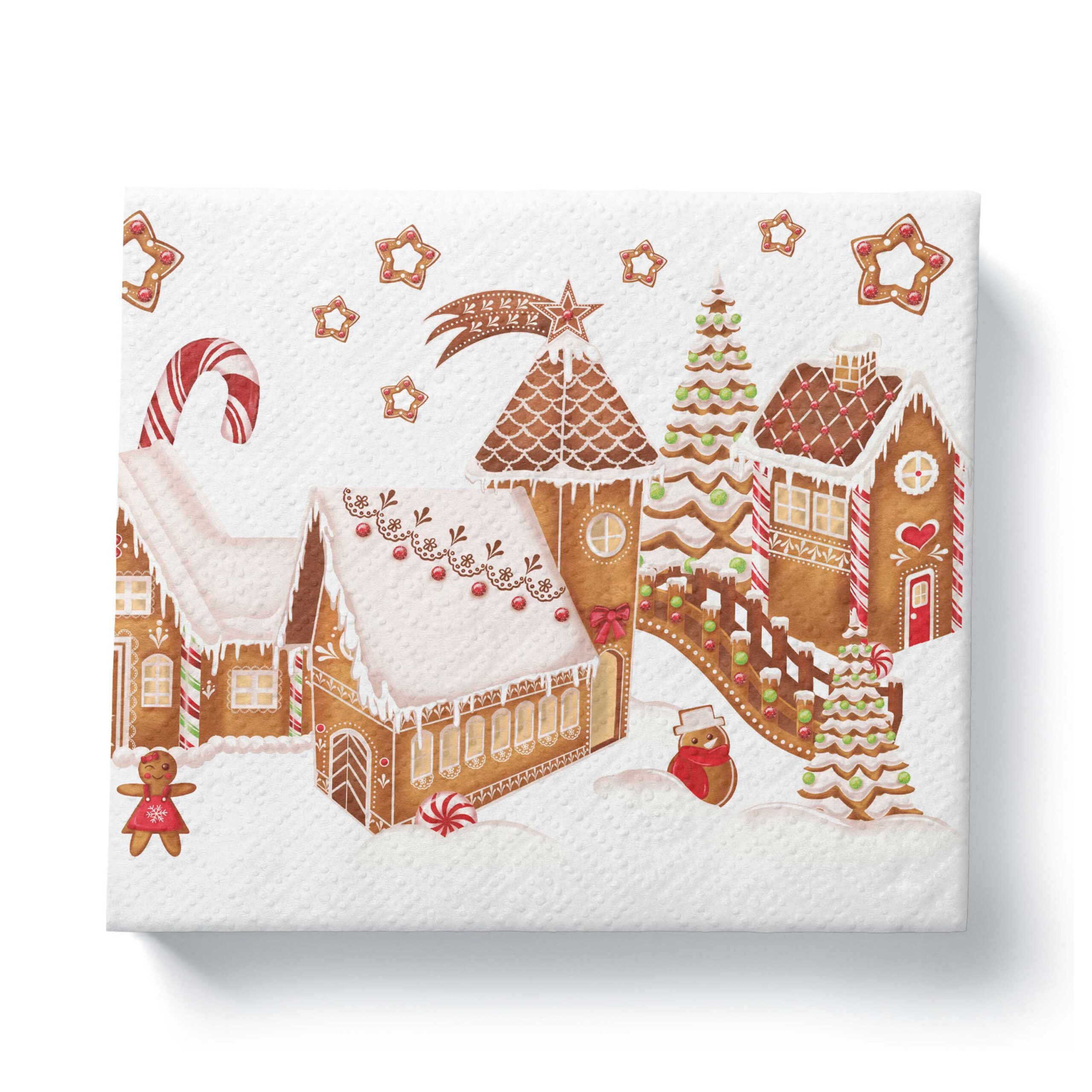 PROCOS Papírové ubrousky 33x33cm 3vrstvé Perníčková vesnička 20ks