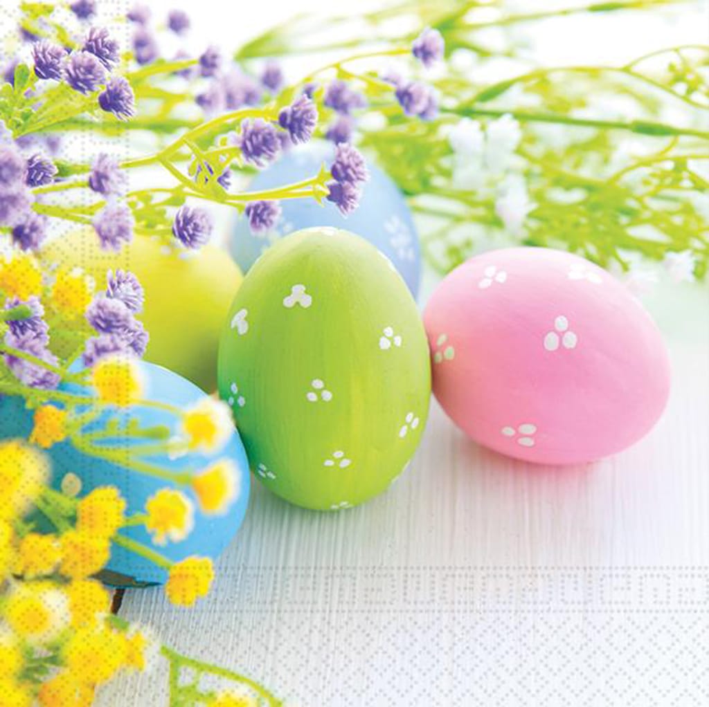 Papírové velikonoční ubrousky dodají prostřenému stolu příjemnou atmosféru u slavnostní večeře. Ubrousek je 3 vrstvý, v balení 20 ks, motiv -velikonoční vajíčka.