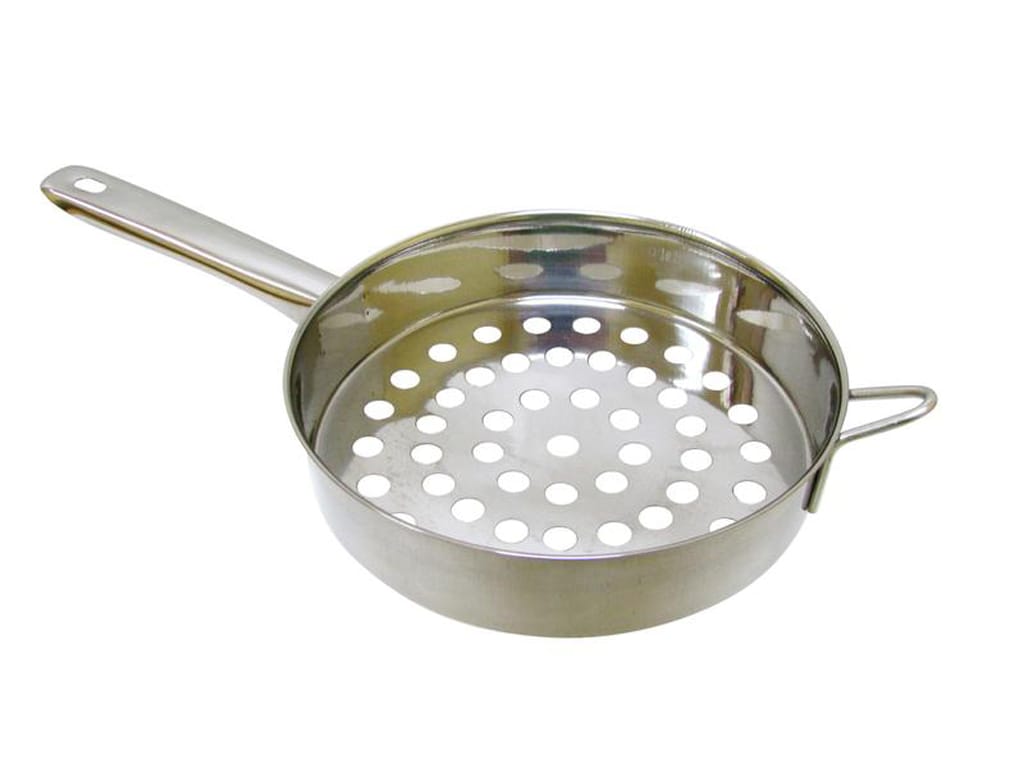 Síto na halušky je velmi oblíbeným pomocníkem při výrobě halušek, játrové i drožďové zavářky a noků do polévek. Zpracované těsto protlačujeme přes síto do vařící vody nebo polévky. Síto je opatřeno kovovým madlem s otvorem pro možnost zavěšení. Háček na kovové konstrukci zajišťuje stabilitu při zapření síta o okraj dřezu. Rozměry – 18 x 3,5 cm.