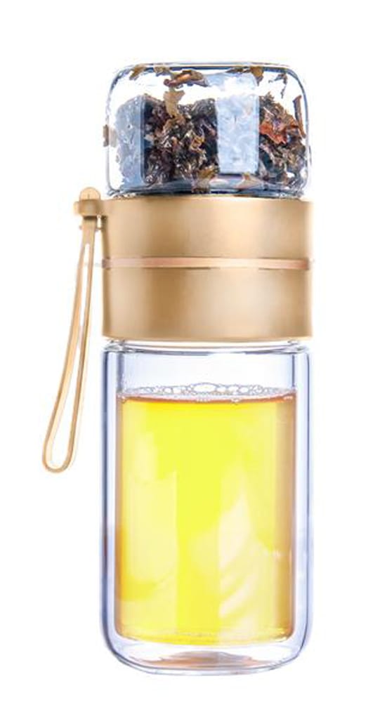 Pokud si děláte kvalitní sypaný čaj a chcete si ho vzít s sebou na cestu, do kanceláře, na výlet,….. je láhev z dvojitého borosilikátové skla ideální řešení. Čajová láhev s kovovým sítkem v prostřední části, které oddělí vyluhovaný nápoj od čaje. Dvojité sklo láhve udrží nápoj déle v požadované teplotě – v zimě teplé, v létě chladné.