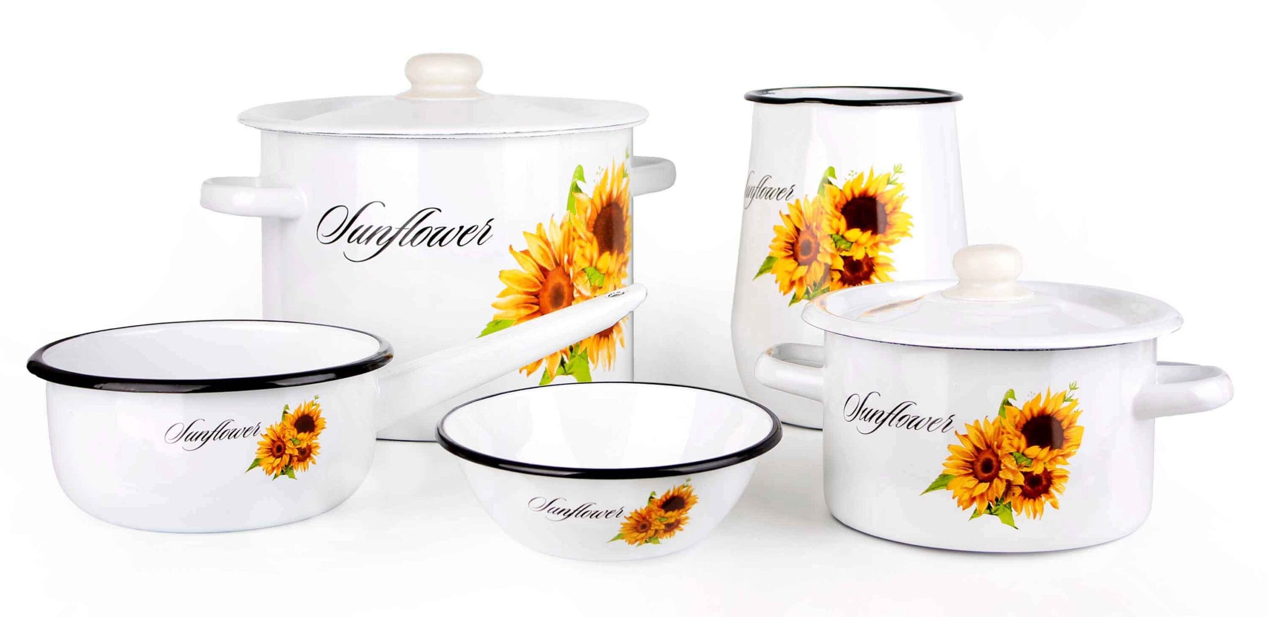 Džbán TORO 2500 ml přináší do kuchyně duši české tradice a funkci pro každodenní život. Vyroben z kvalitního smaltovaného kovu, nabízí vynikající odolnost vůči opotřebení i vysokým teplotám — ideální pro uchovávání vody, mléka či domácích limonád. Objem 2,5 l poskytuje dostatek prostoru pro celou rodinu, zatímco dekor čistě bílé a motivem slunečnice navozuje atmosféru chalupy, dětství a pohodových chvil u stolu. Díky robustní konstrukci a nadčasovému designu se džbán hodí jak do moderní kuchyně, tak na chalupu či jídelní stůl s rustikálním šarmem
